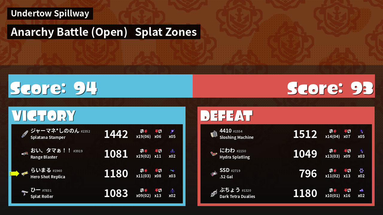 | Mode | Splat Zones - Anarchy Battle (Open) | ||