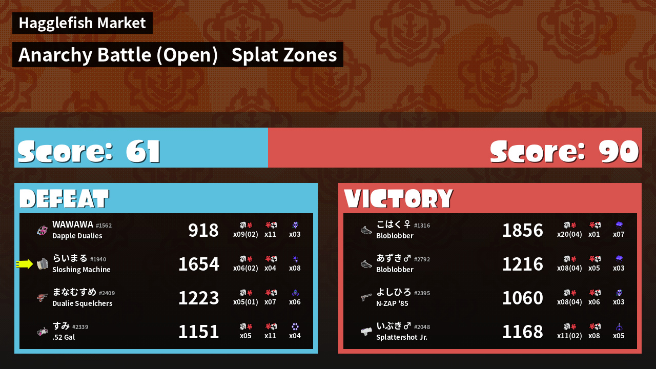 | Mode | Splat Zones - Anarchy Battle (Open) | ||