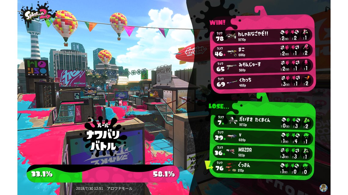 Mode | Turf War - Regular Battle | |||||||||||||||||||||||||||||||