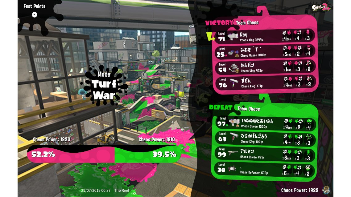 | Splatfest Title | Chaos King → Chaos King | ||||||||||||||||||||||||||||