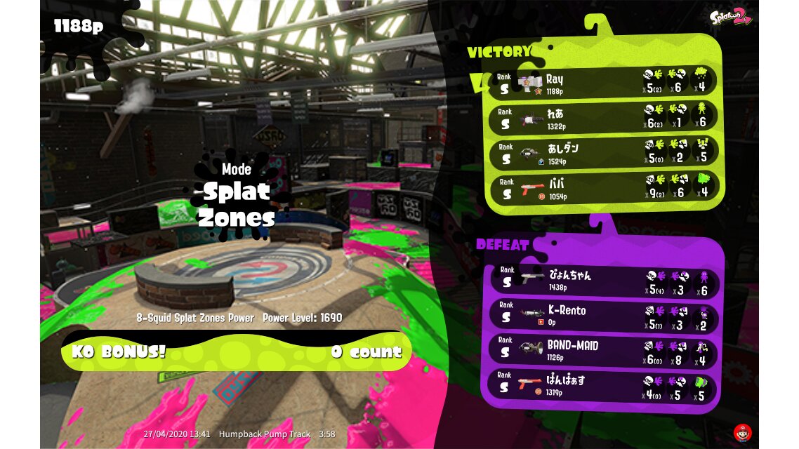 | Mode | Splat Zones - Ranked Battle | |||||||||||||||||||||||||