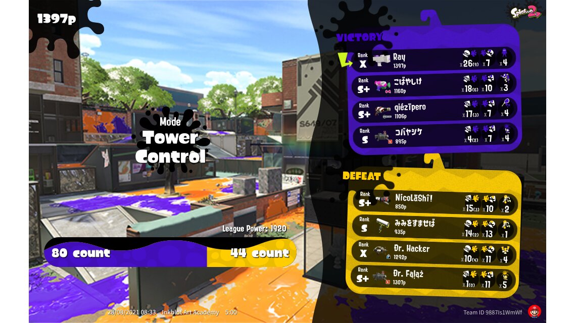 | Mode | Tower Control - League Battle (Twin) | ||||||||||||||||||||||