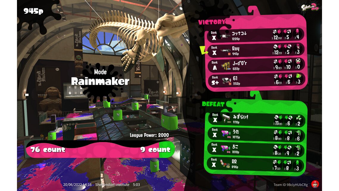 | Mode | Rainmaker - League Battle (Twin) | ||||||||||||||||||||||||||||