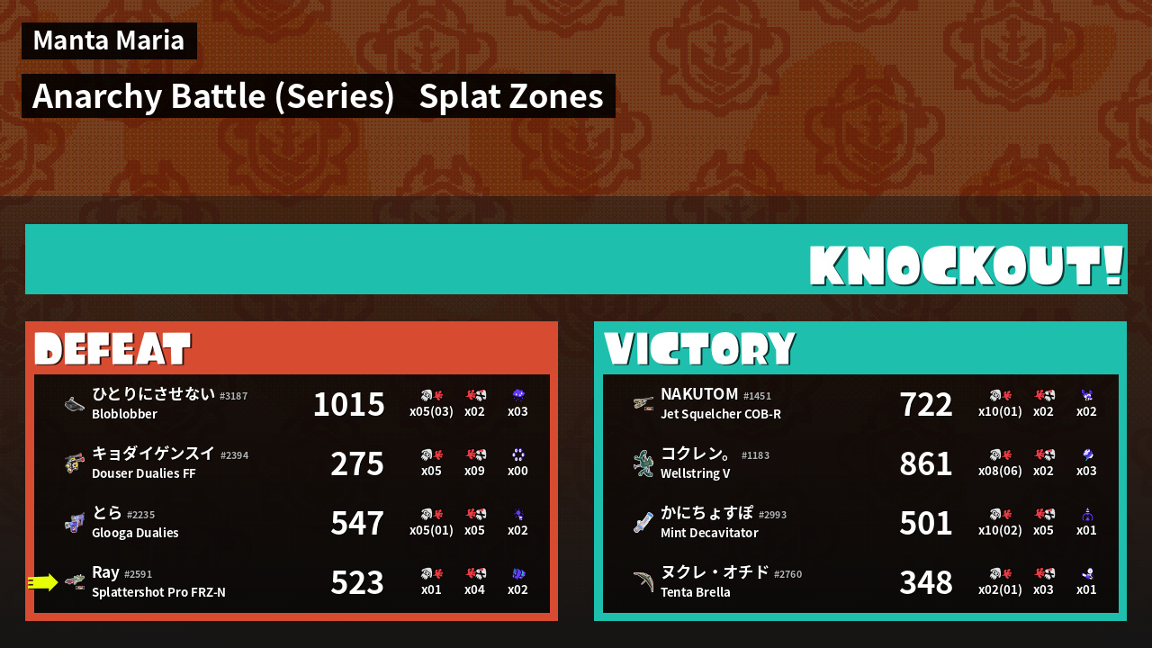 | Mode | Splat Zones - Anarchy Battle (Series) | ||