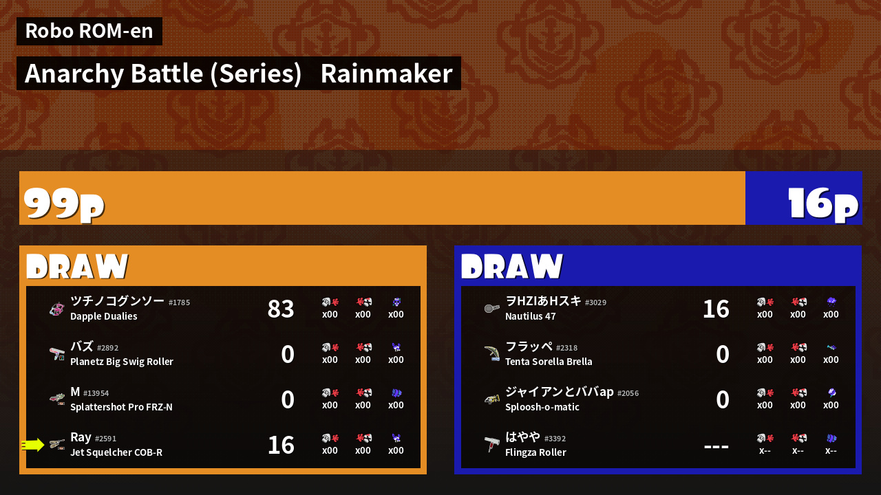 | Mode | Rainmaker - Anarchy Battle (Series) | ||