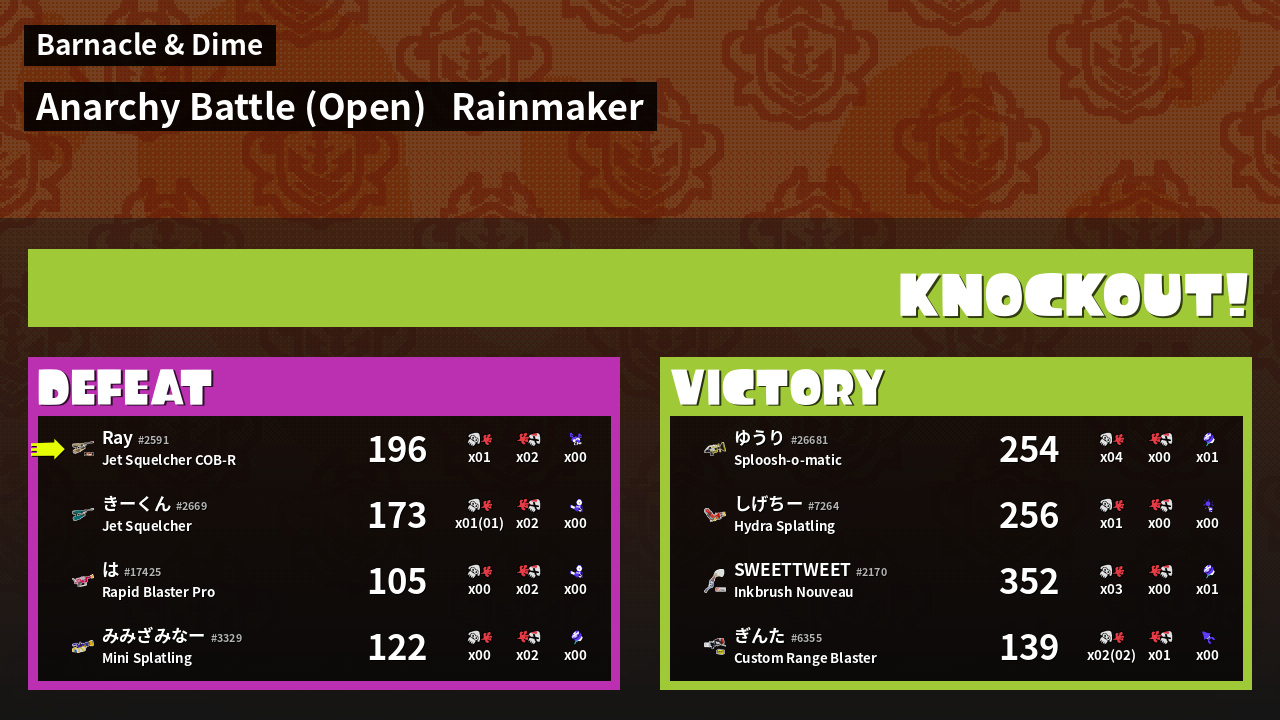 Name | Weapon | Inked | ![]() |