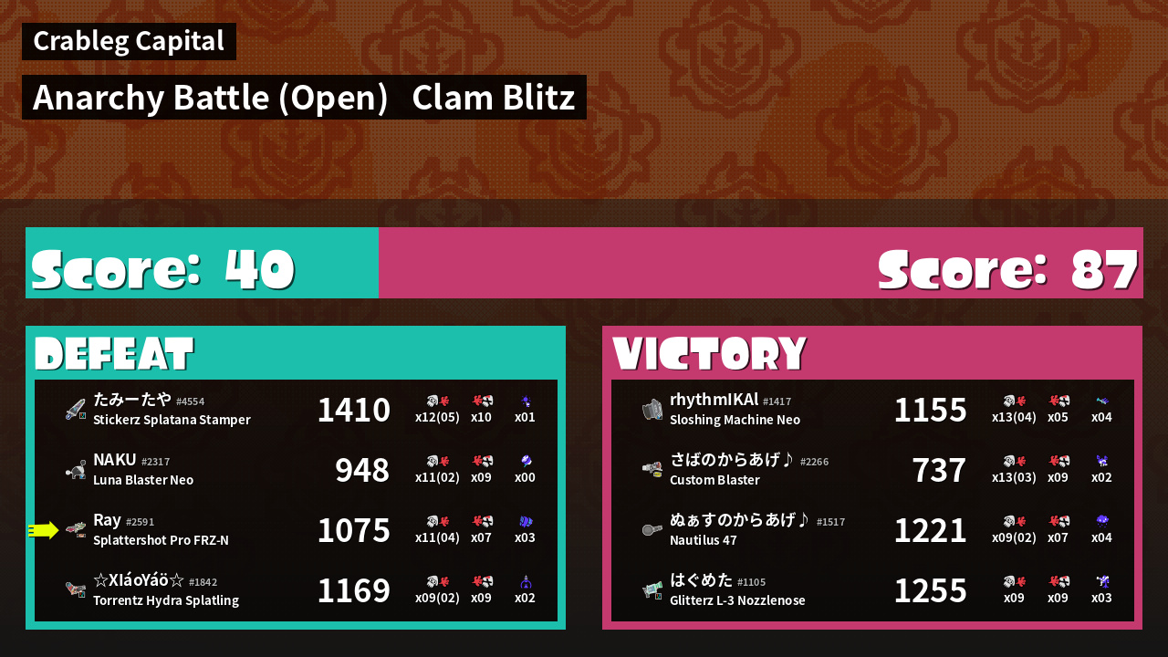 | Mode | Clam Blitz - Anarchy Battle (Open) | ||
