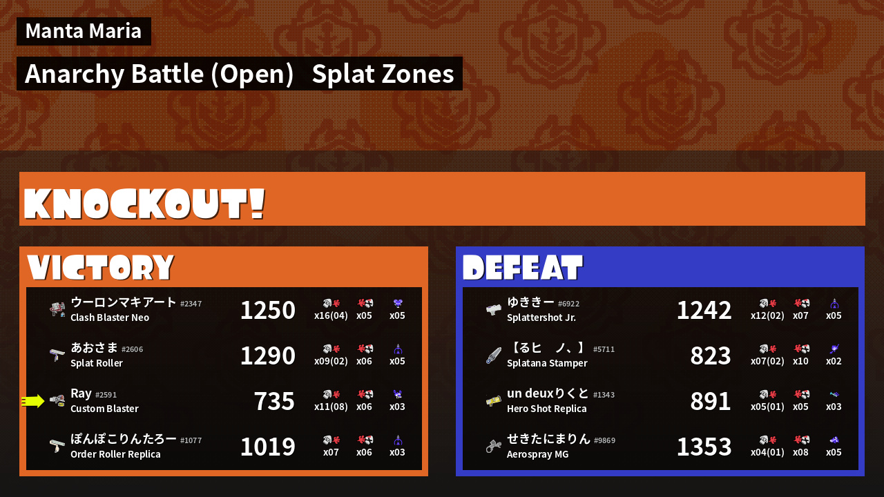 | Mode | Splat Zones - Anarchy Battle (Open) | ||