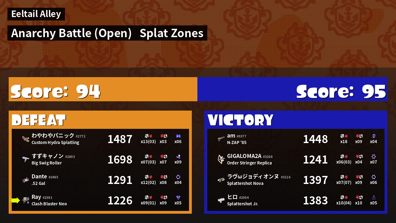 | Mode | Splat Zones - Anarchy Battle (Open) | ||