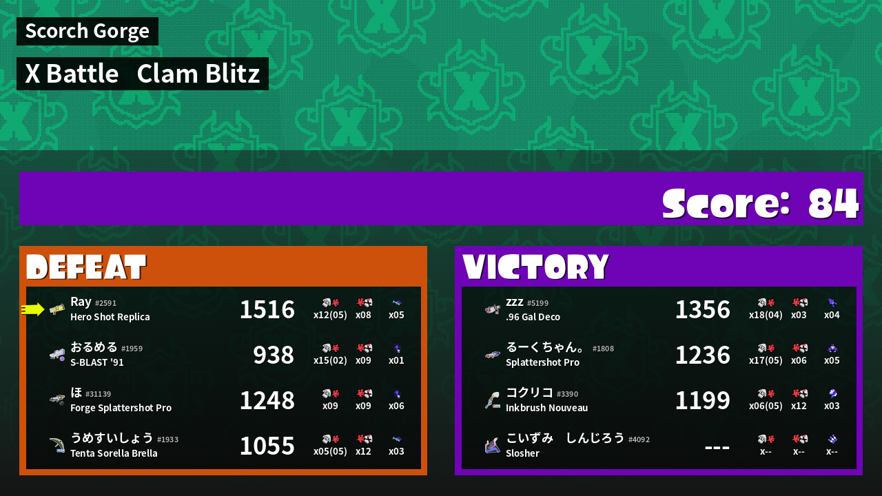 | Mode | Clam Blitz - X Battle | ||