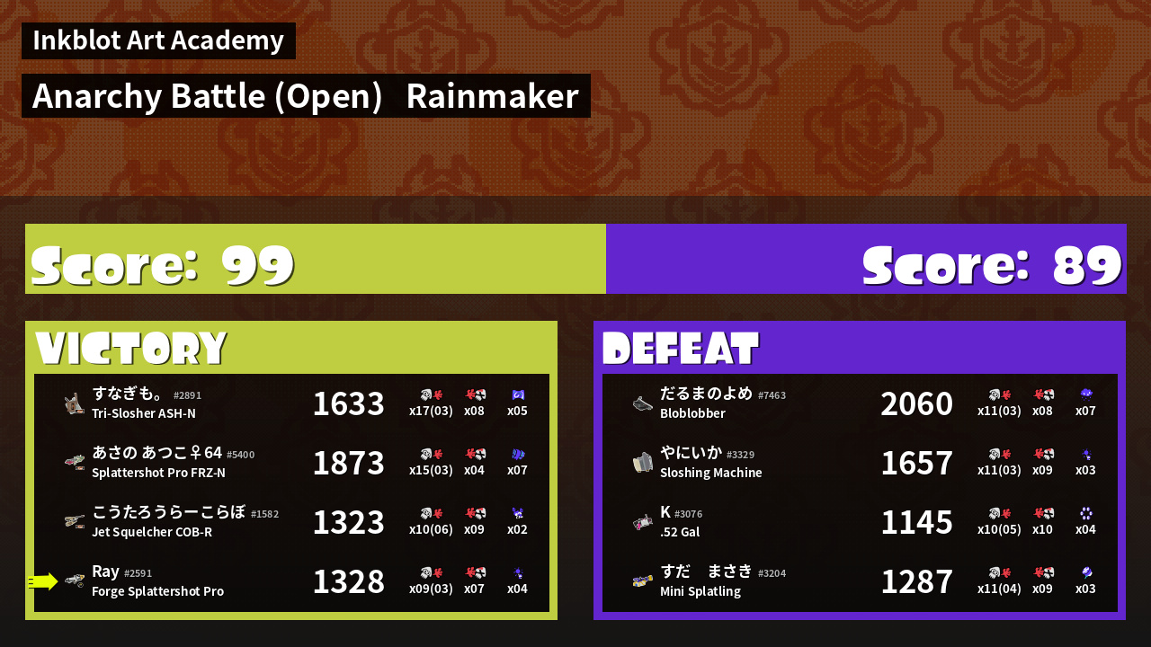 | Mode | Rainmaker - Anarchy Battle (Open) | ||