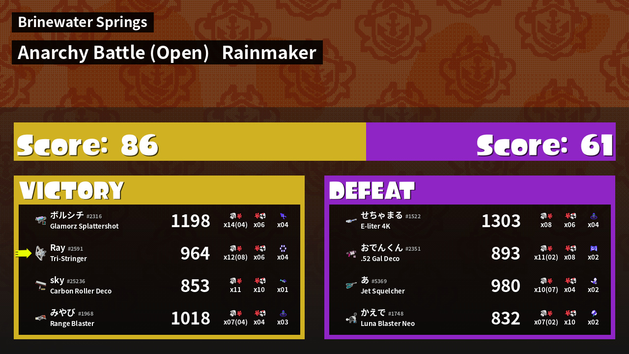 | Mode | Rainmaker - Anarchy Battle (Open) | ||