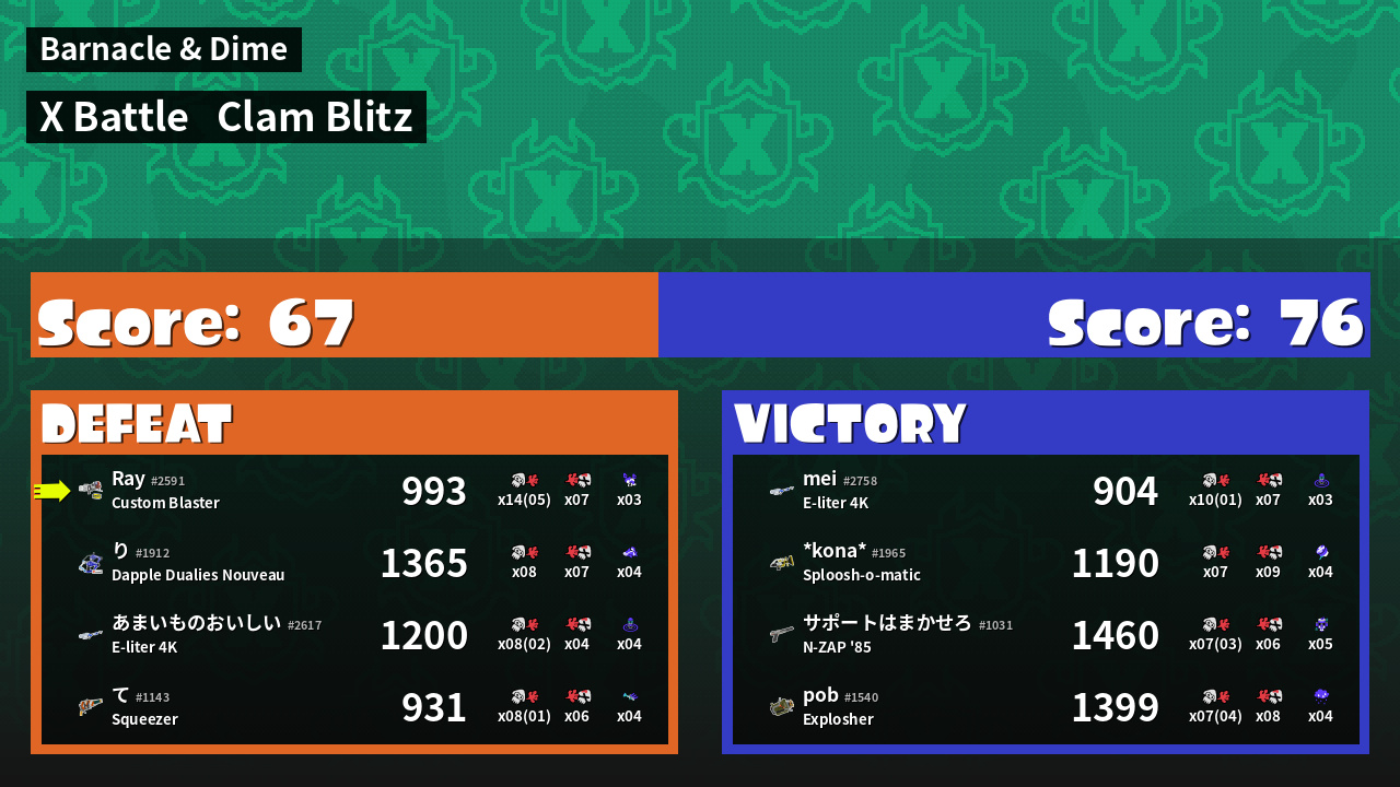 | Medals | #1 Overall Splatter #1 Popular Target #1 Enemy Splatter | ||