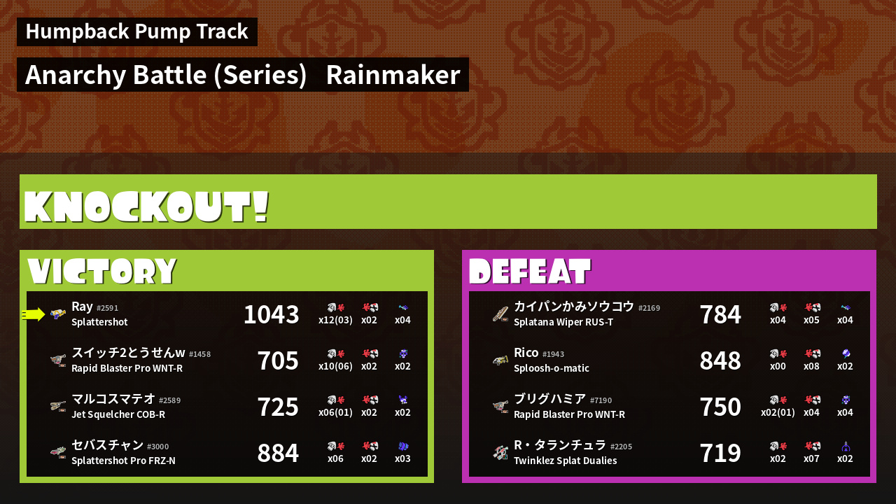 Kills / Deaths | 9 + 3 / 2 > Kill Ratio: 4.50 | ||