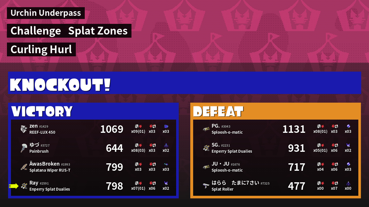 | Weapon | Enperry Splat Dualies ( Curling Bomb / Triple Splashdown) | ||