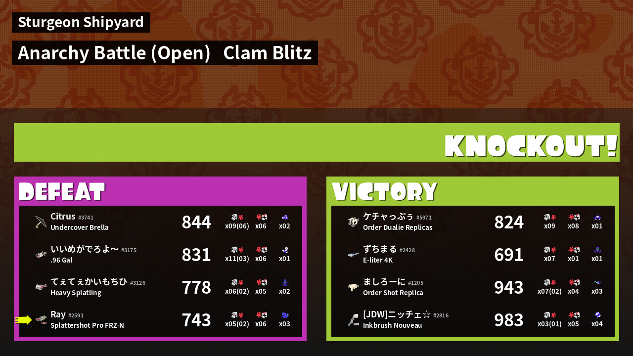 | Mode | Clam Blitz - Anarchy Battle (Open) | ||