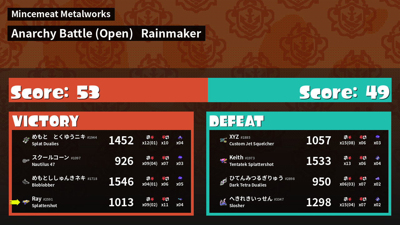 | Mode | Rainmaker - Anarchy Battle (Open) | ||