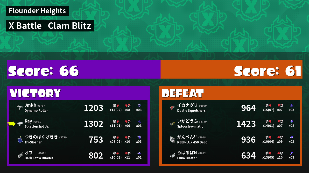 | Mode | Clam Blitz - X Battle | ||