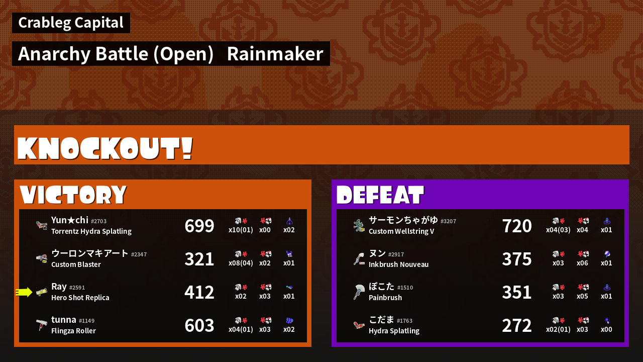 | Mode | Rainmaker - Anarchy Battle (Open) | ||