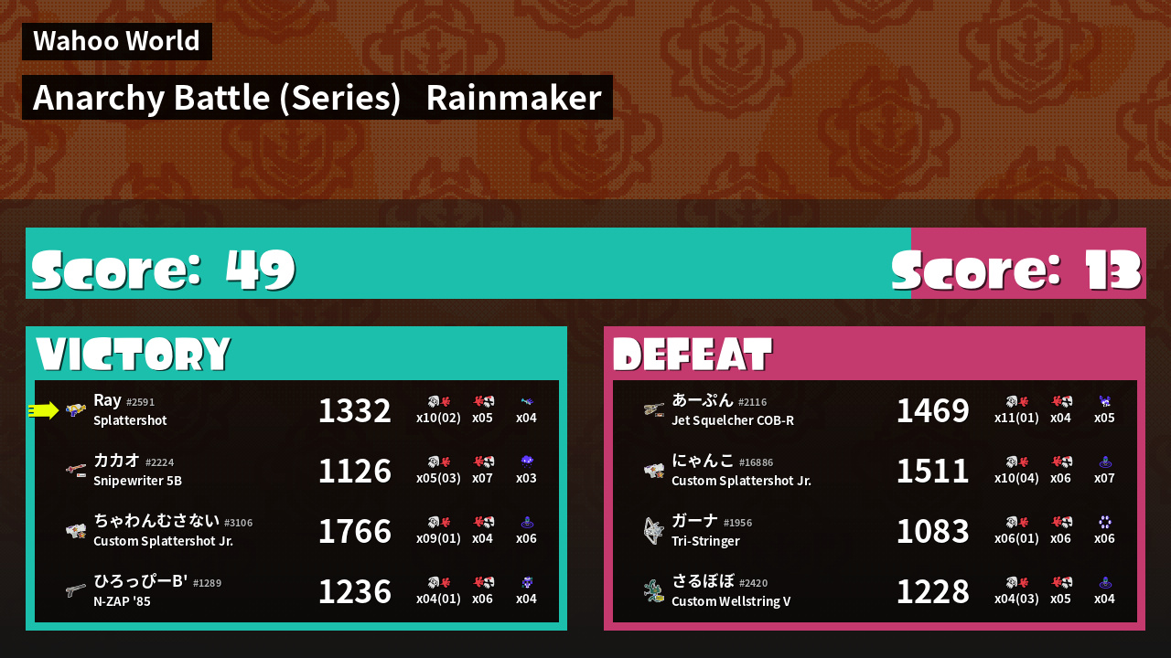 Kills / Deaths | 8 + 2 / 5 > Kill Ratio: 1.60 | ||