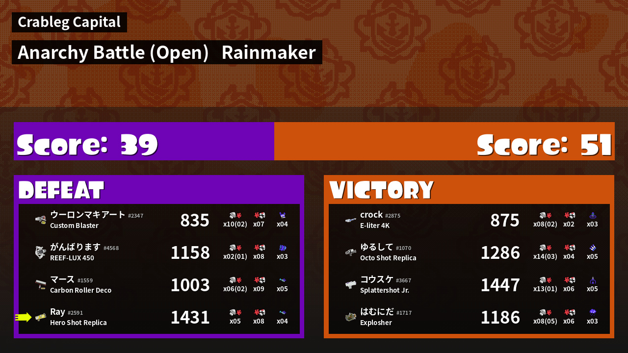 | Mode | Rainmaker - Anarchy Battle (Open) | ||