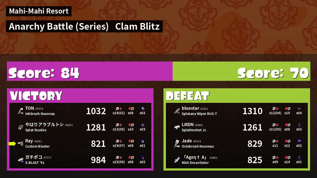 | Mode | Clam Blitz - Anarchy Battle (Series) | ||