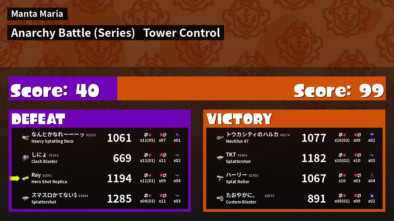 | Mode | Tower Control - Anarchy Battle (Series) | ||
