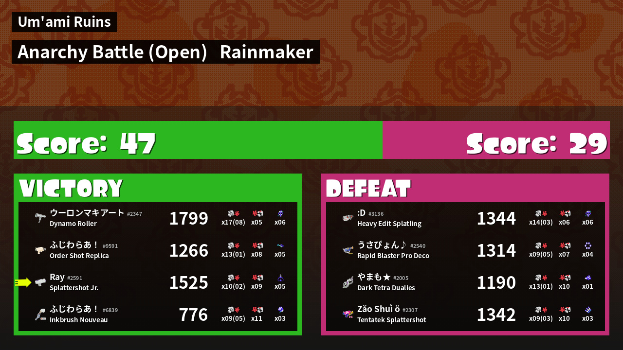 | Mode | Rainmaker - Anarchy Battle (Open) | ||