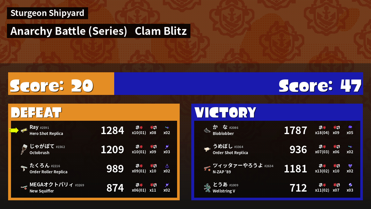 | Mode | Clam Blitz - Anarchy Battle (Series) | ||