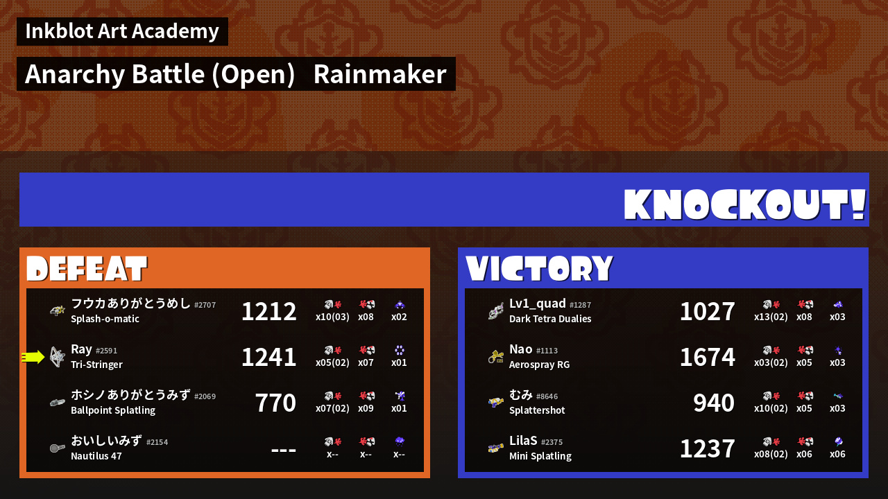 | Mode | Rainmaker - Anarchy Battle (Open) | ||