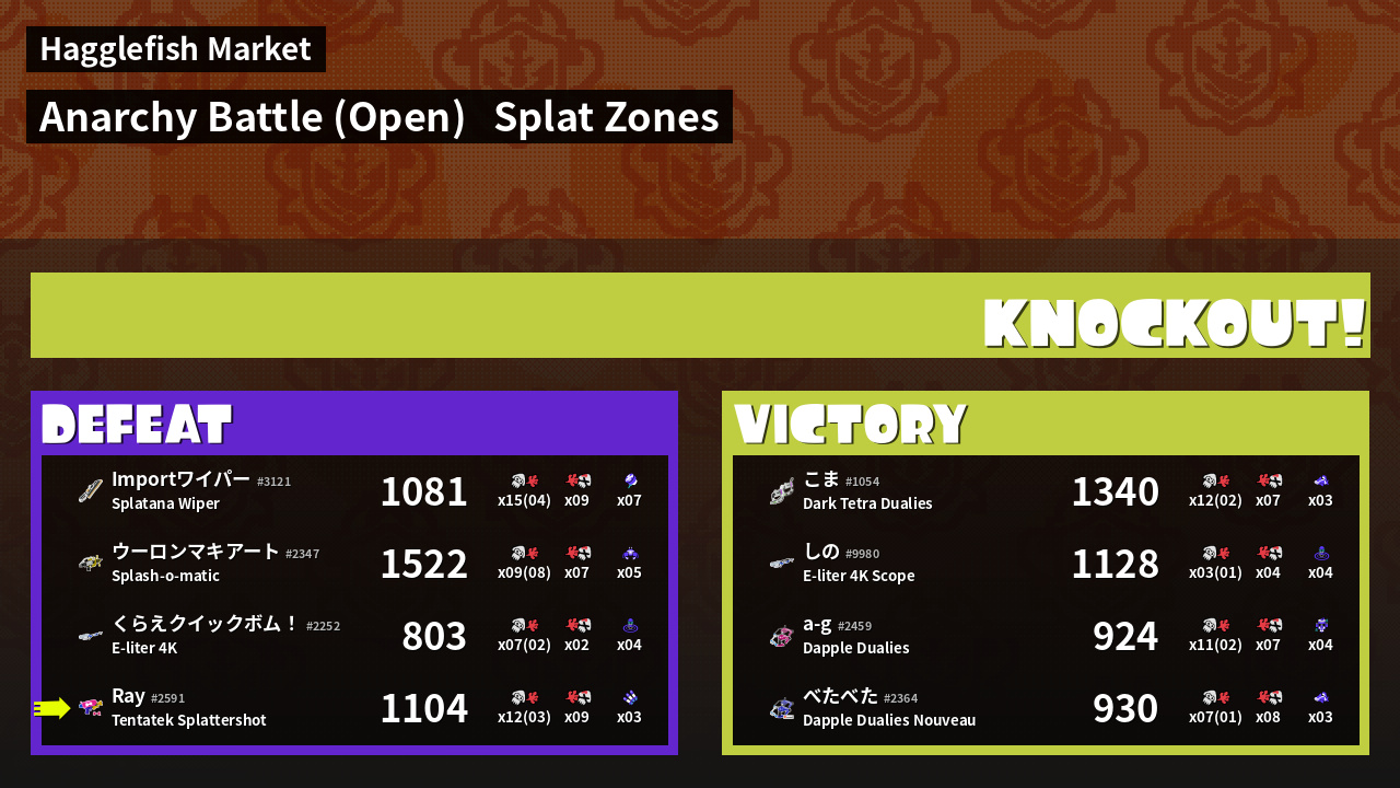 | Mode | Splat Zones - Anarchy Battle (Open) | ||