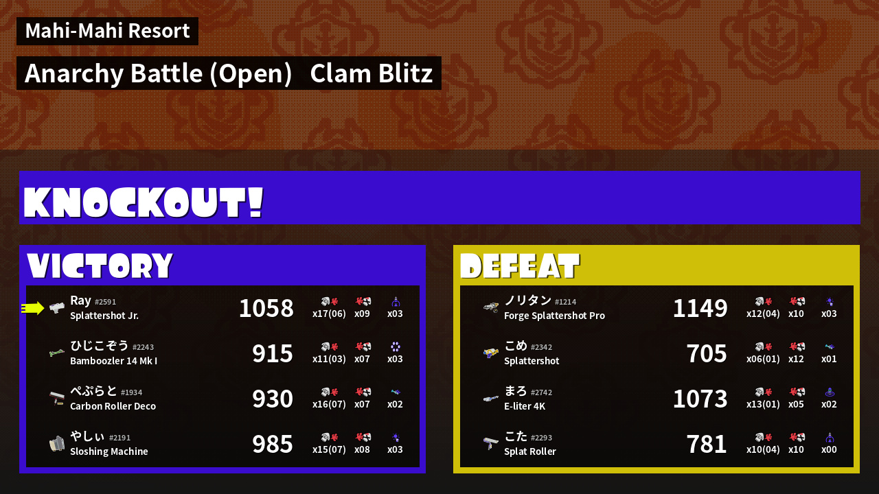 Kills / Deaths | 11 + 6 / 9 > Kill Ratio: 1.22 | ||