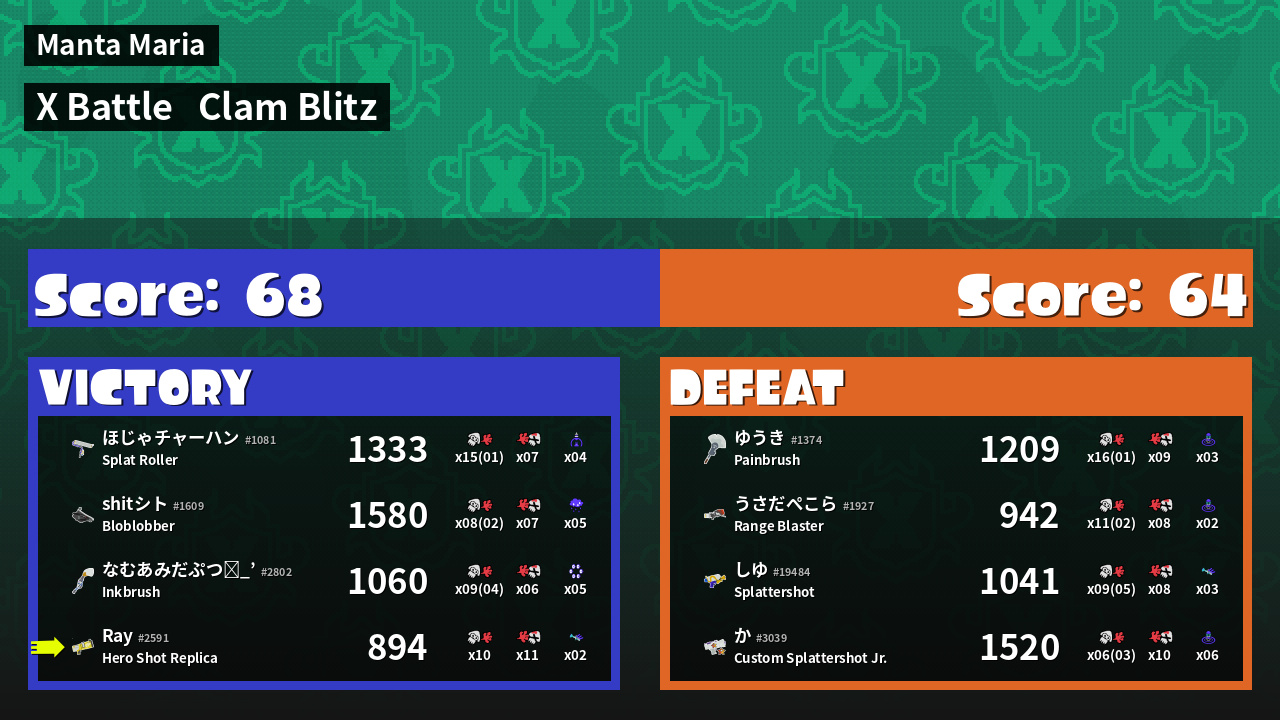 | Mode | Clam Blitz - X Battle | ||