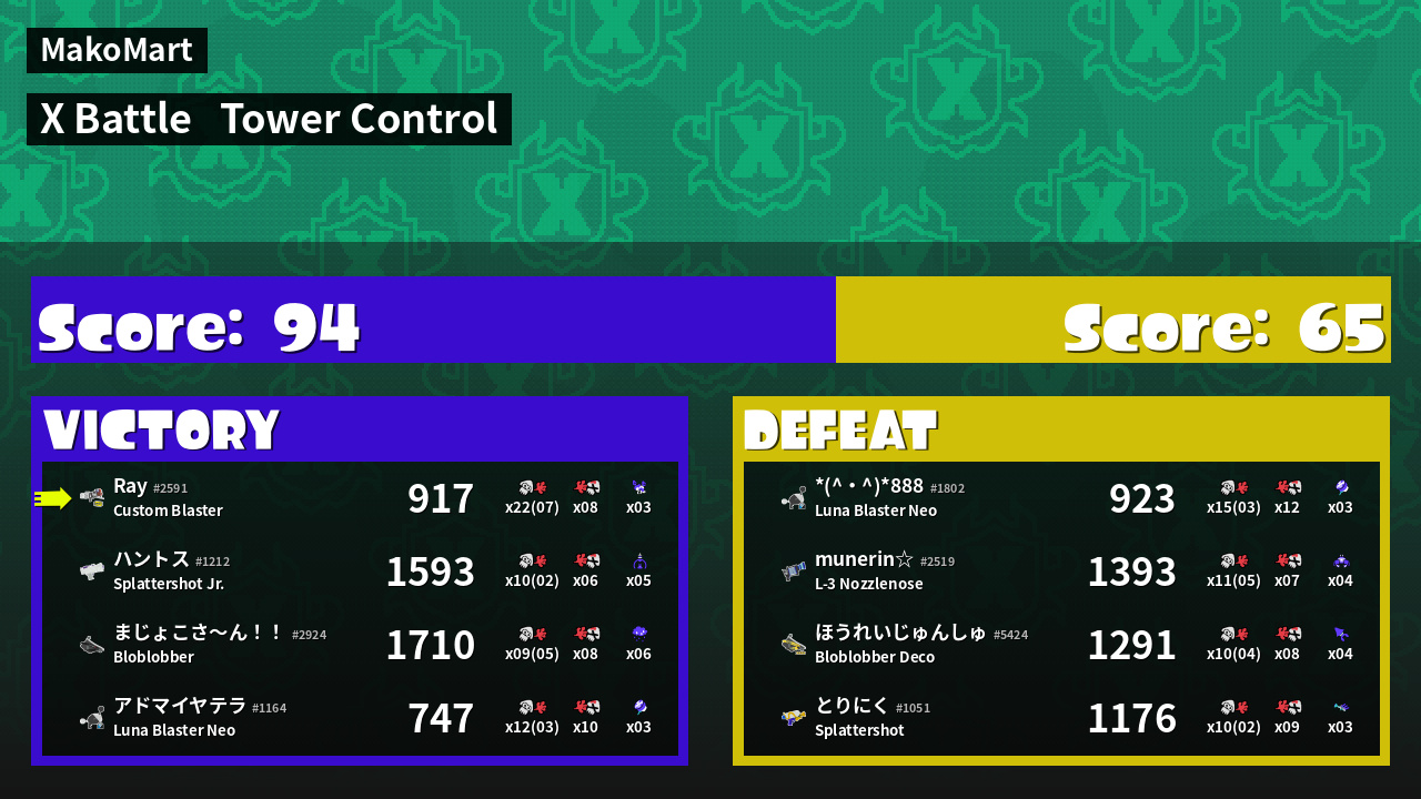 | Mode | Tower Control - X Battle | ||