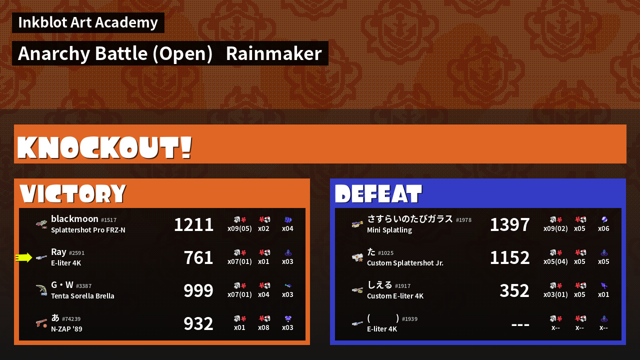 | Mode | Rainmaker - Anarchy Battle (Open) | ||