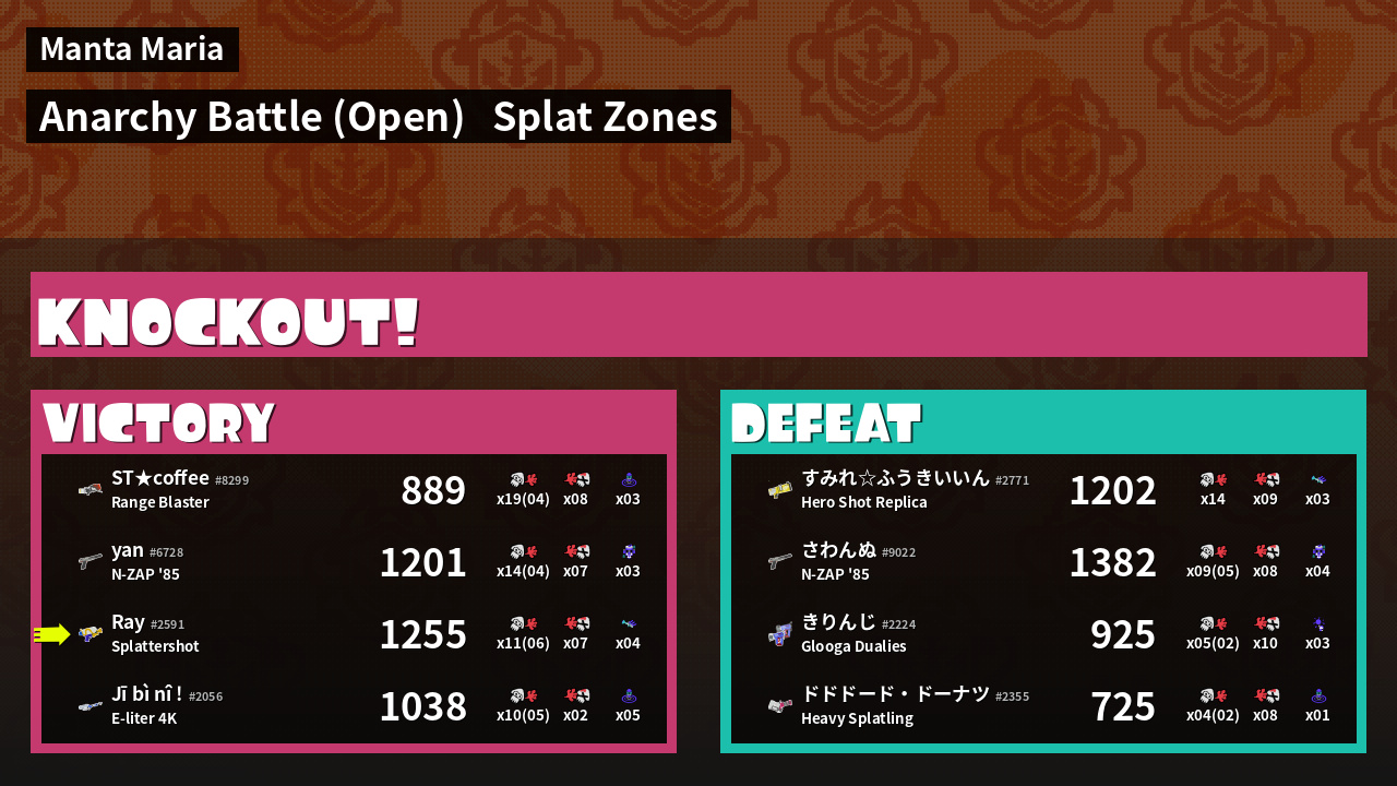 | Mode | Splat Zones - Anarchy Battle (Open) | ||