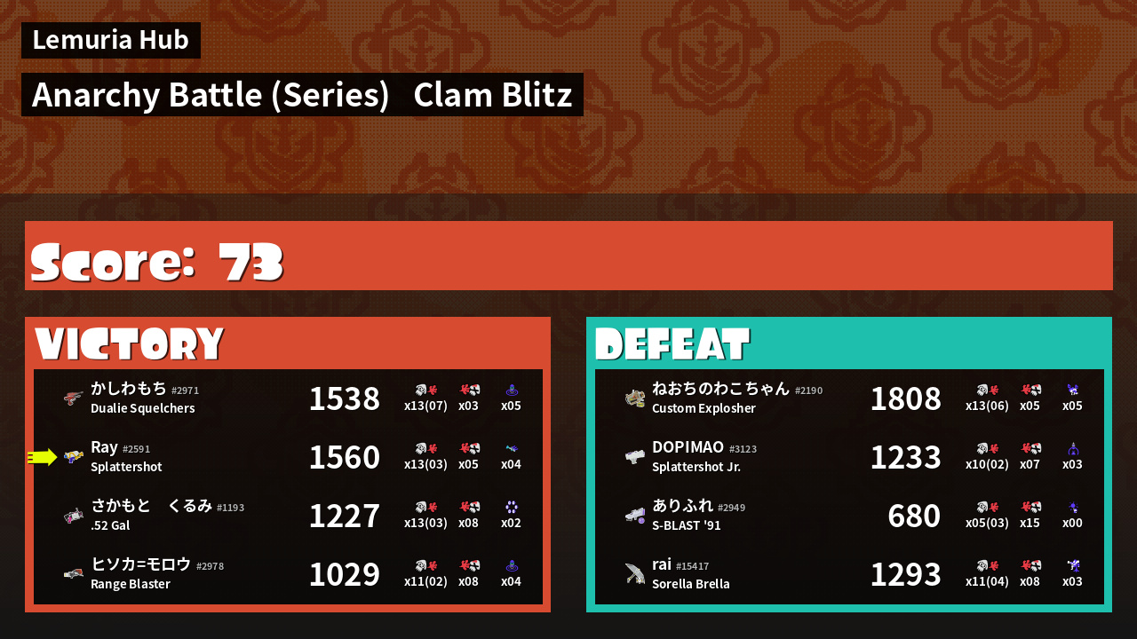 Kills / Deaths | 10 + 3 / 5 > Kill Ratio: 2.00 | ||