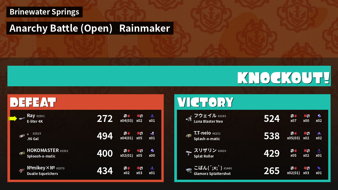 | Mode | Rainmaker - Anarchy Battle (Open) | ||