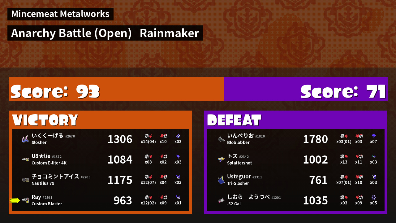 Kills / Deaths | 10 + 2 / 9 > Kill Ratio: 1.11 | ||