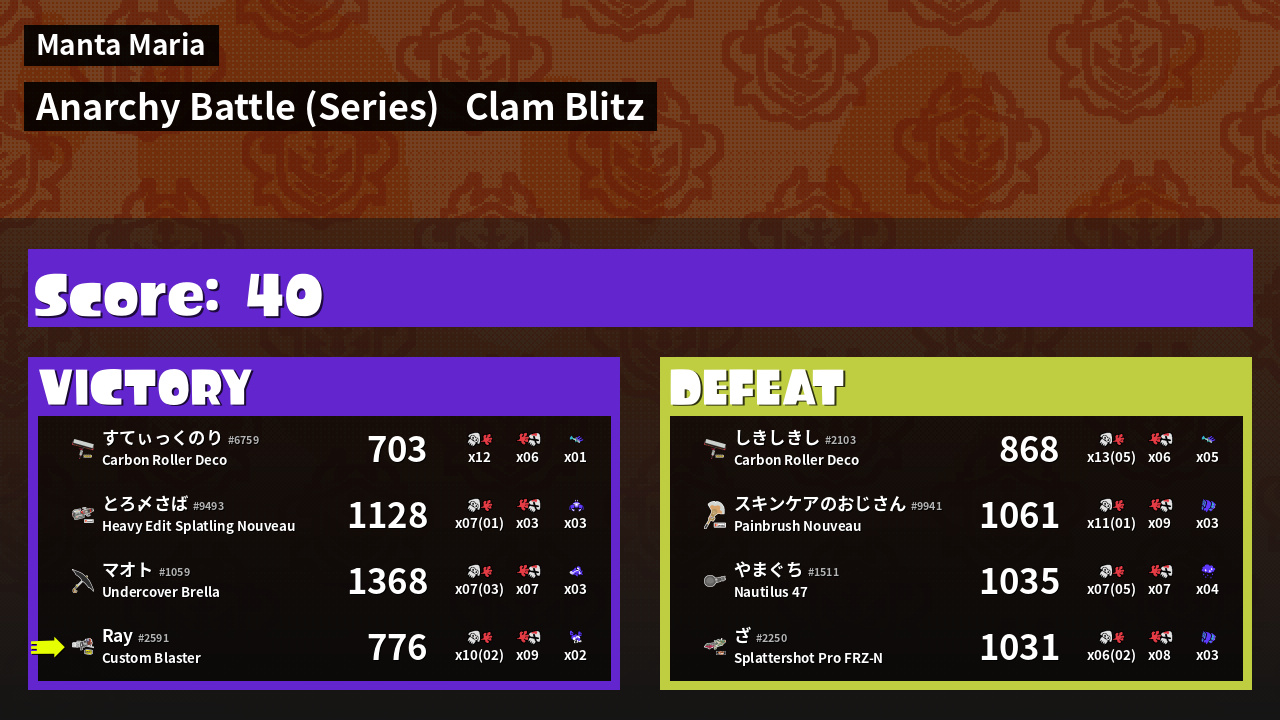 Kills / Deaths | 8 + 2 / 9 < Kill Ratio: 0.89 | ||