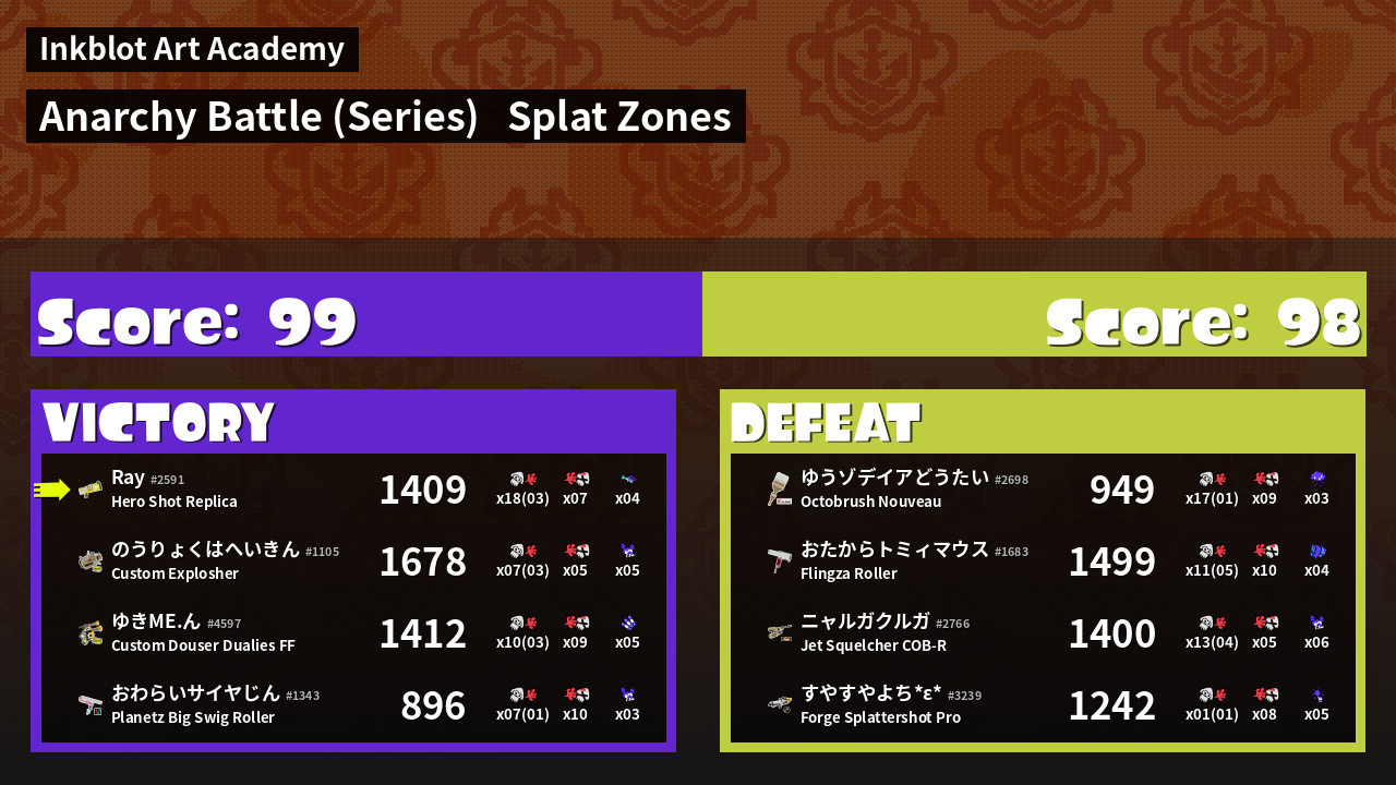 | Mode | Splat Zones - Anarchy Battle (Series) | ||