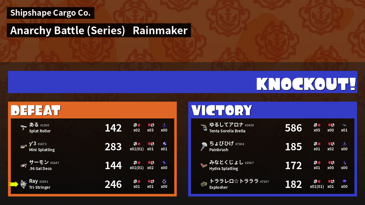 | Medals | #2 Overall Splatter #2 Turf Inker #2 Enemy Splatter | ||