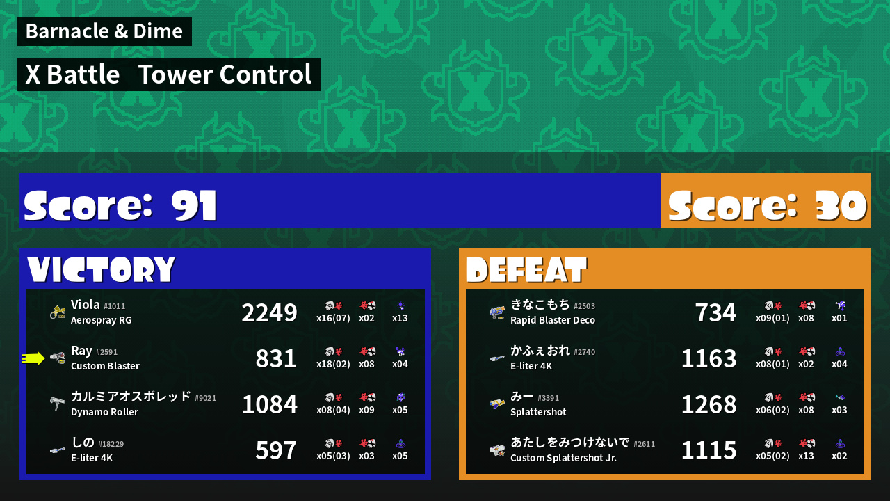 | Mode | Tower Control - X Battle | ||