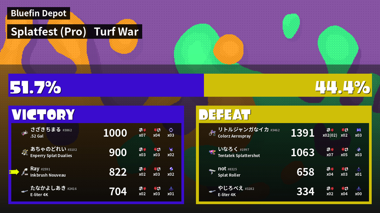 | Mode | Turf War - Splatfest (Pro) | ||