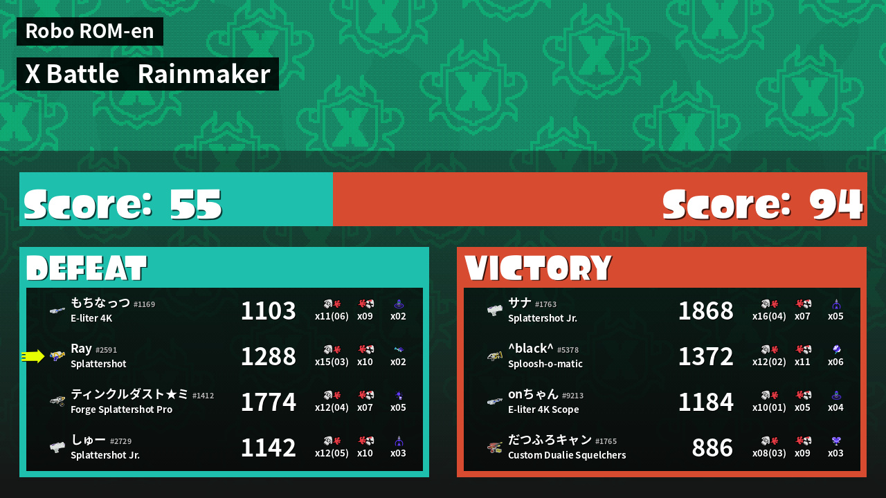 Kills / Deaths | 12 + 3 / 10 > Kill Ratio: 1.20 | ||