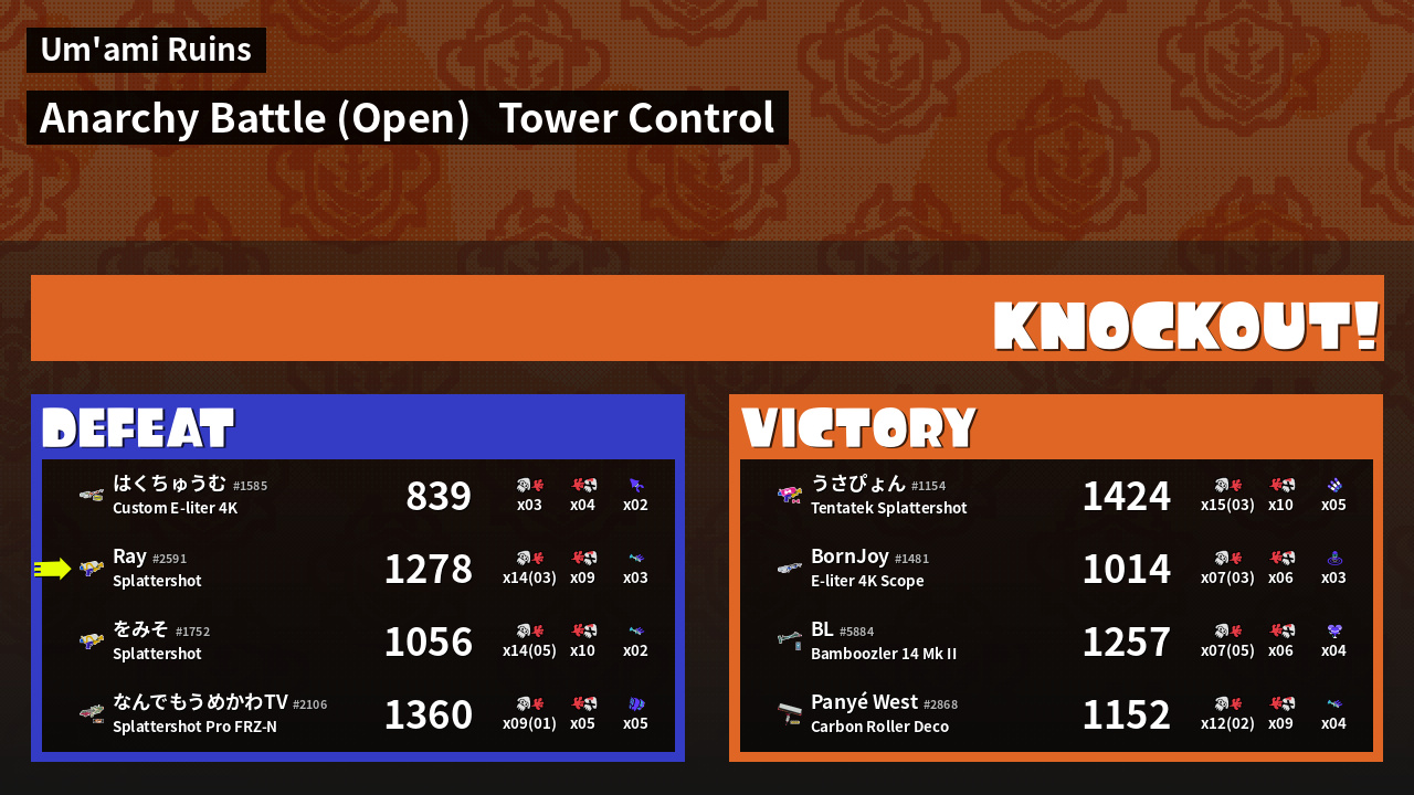 Kills / Deaths | 11 + 3 / 9 > Kill Ratio: 1.22 | ||