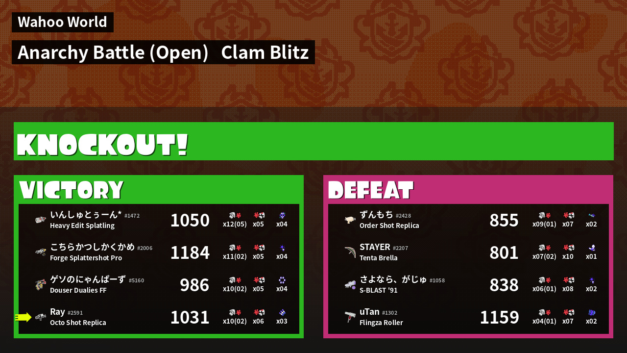 | Mode |  Clam Blitz -  Anarchy Battle (Open) | ||