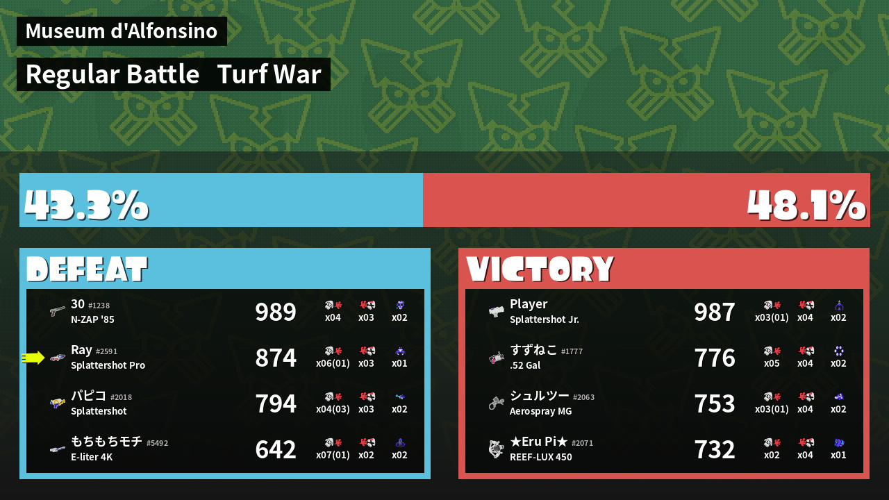 Kills / Deaths | 5 + 1 / 3 > Kill Ratio: 1.67 | ||
