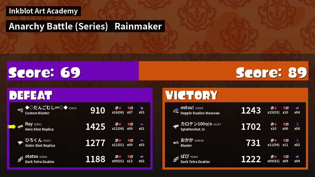 | Mode | Rainmaker - Anarchy Battle (Series) | ||