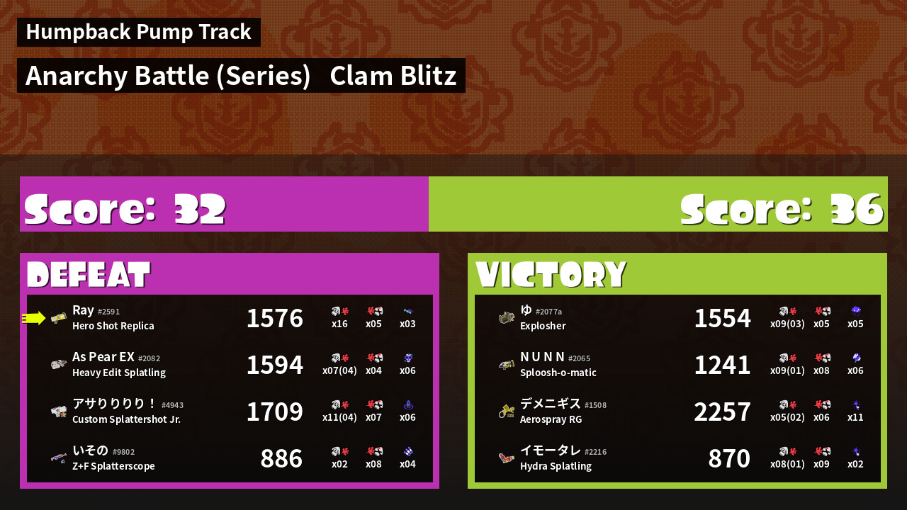 | Mode | Clam Blitz - Anarchy Battle (Series) | ||
